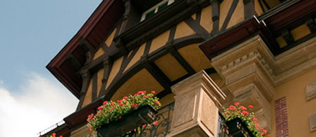 (z.B. aus Bankirai Holz) in Verbindung mit den Balkonkonstruktion.